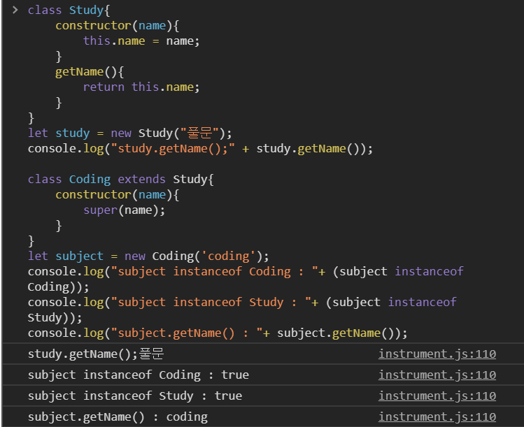 console.log("subject instanceof Coding : "+ (subject instanceof Coding));