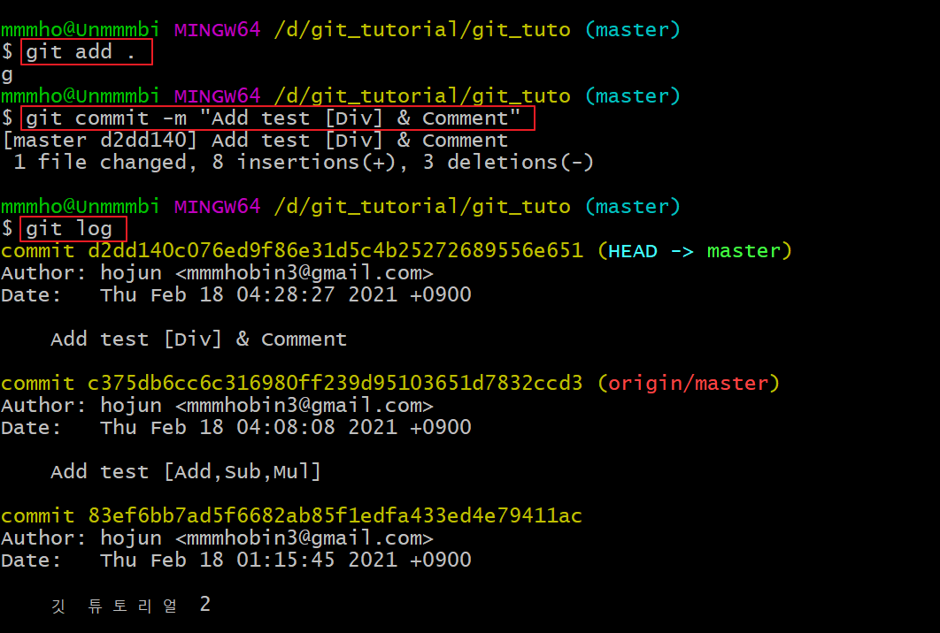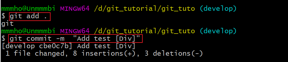 코드를 수정 후 git add. 와 git commit을 해주었습니다