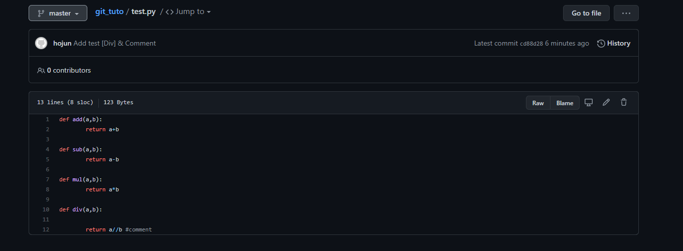 저는 기존에 있던 로컬 저장소 안에 test.py를 수정해보겠습니다.