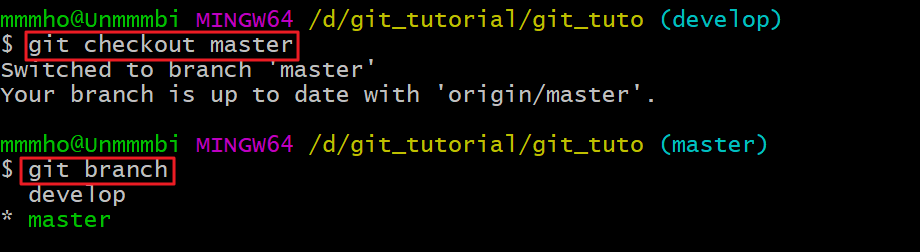 여기서 브랜치를 마스터로 이동시켜주겠습니다.