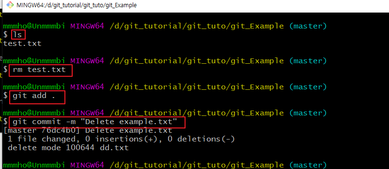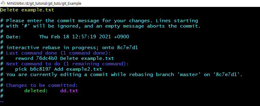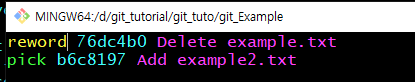 이제 Delete exam.txt 의 커밋 메세지를 수정해보도록 하겠습니다.