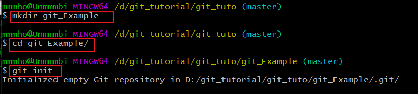 실습을 위해 하나의 디렉토리를 생성하고 git init을 통해 초기화 시켜주겠습니다.