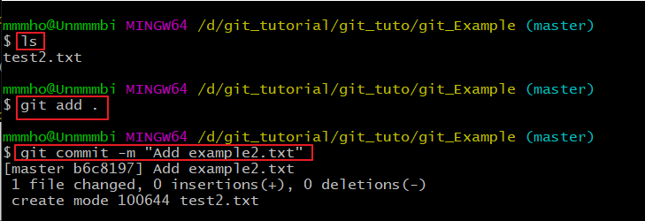 이번엔 test2.txt 파일을 생성하고 add commit 해주겠습니다.