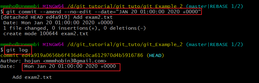 변경하고자 하는 commit의 날짜가 정상적으로 변경된 것을 확인할 수 있습니다.