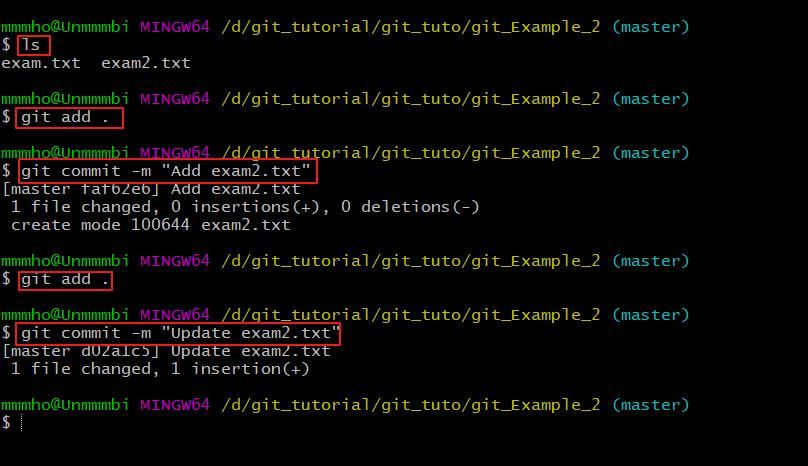 그리고 exam.txt 라는 파일을 하나 만들고 add 하고 commit 해줍니다.