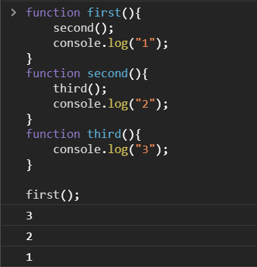 Call func3을 가장 먼저 출력하고 차례로 second(), first()가 출력됩니다.