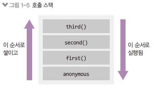 함수를 호출하면 스택에 쌓이고 또 다른 함수를 호출하면 다음 스택에 쌓으면서