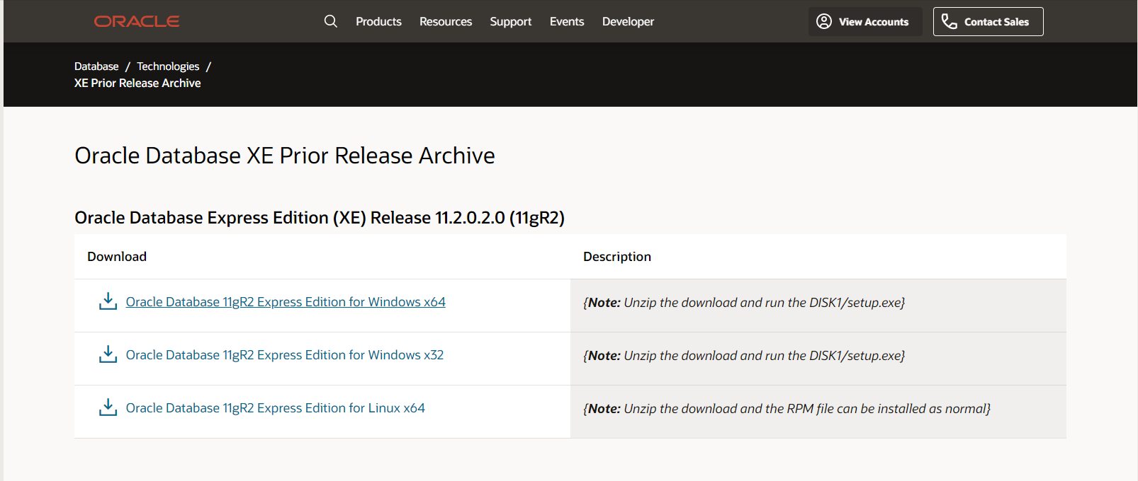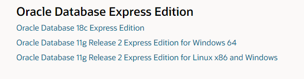 1. 위의 링크를 클릭하여 접속합니다. 그 후 스크롤을 내리다보면 "Oracle Database Express Edition" 항목이 있습니다.