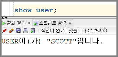 만들어진 scott_user를 더블 클릭해 워크시트를 열고 show user; 를 실행해보겠습니다.