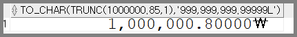 select to_char(trunc(1000000.85,1),'999,999,999.99999l') from dual;