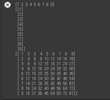- 문제 : 구구단 행렬 만들기