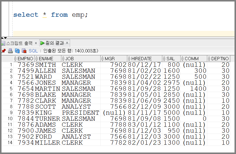 emp 테이블은 위 그림과 같습니다.