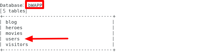 그중에서 저희는 bWAPP라는 데이터베이스에서 'users'라는 테이블의 칼럼 내용들을 알아보도록 하겠습니다!!