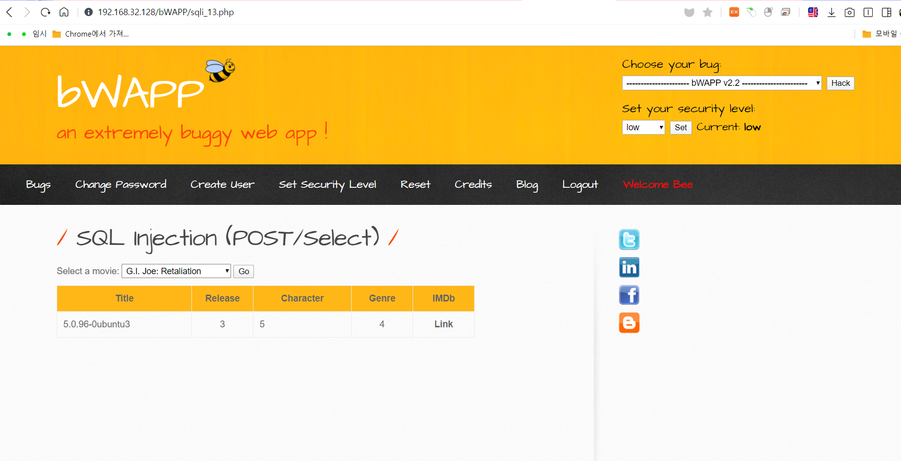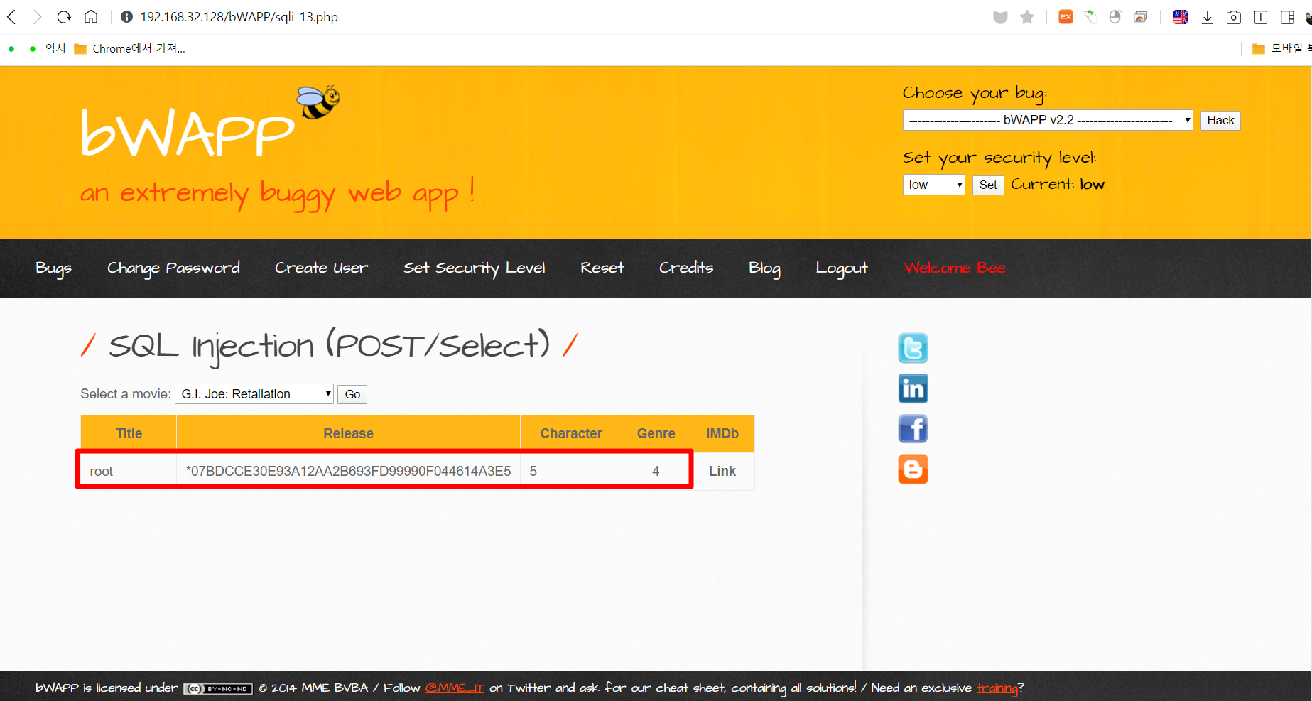 7-4. bee-box 를 사용하여 SQL injection 알아보기! 본문