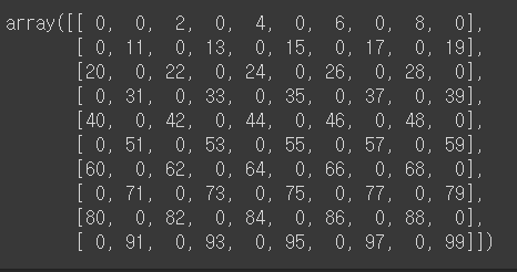 arr[(arr%10%3==1) | ((arr/10).astype('int')%3==1)] = 0 #3으로 나눴을때 나머지가 1이면 0으로 출력