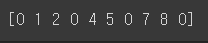 2차원 배열의 0,3,6,9 번째 줄에 0을 입력하는 코드입니다.