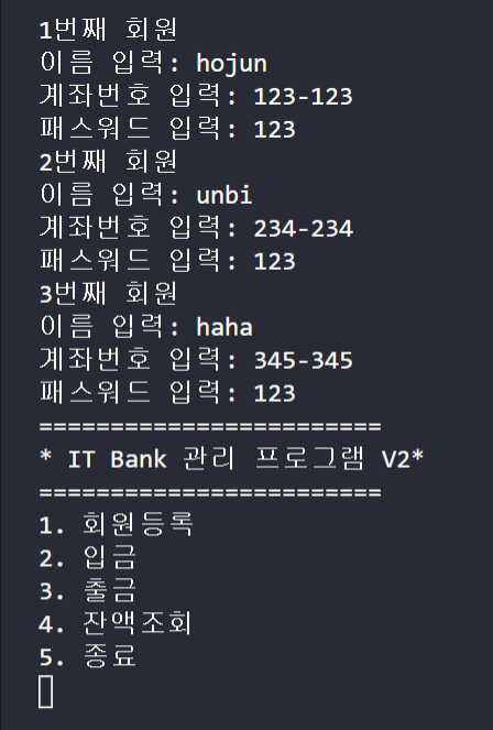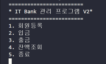 cout << "* IT Bank 관리 프로그램 V2*"<<endl;