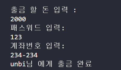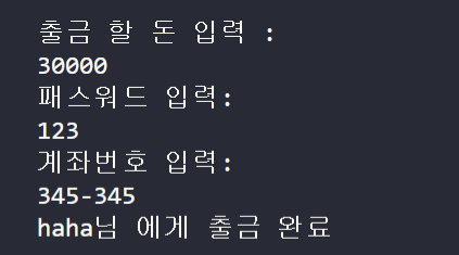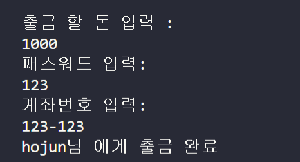 cout <<bps[i].name <<"님 에게 출금 완료"<<endl;