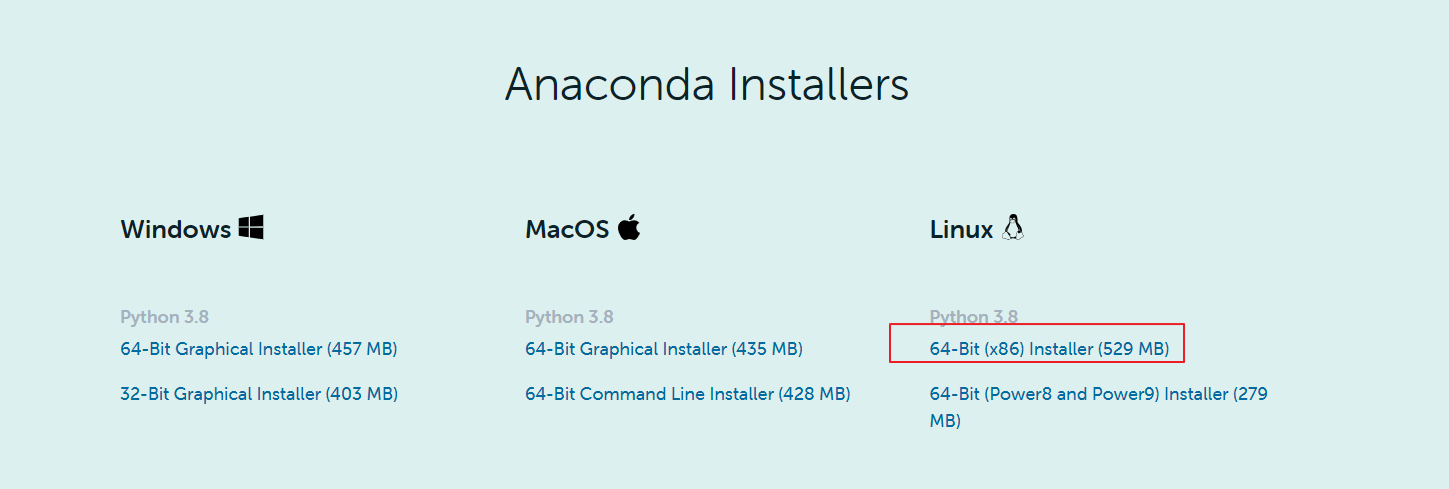 저는 리눅스를 사용하기 때문에 리눅스 아나콘다 Installer를 다운로드하겠습니다.