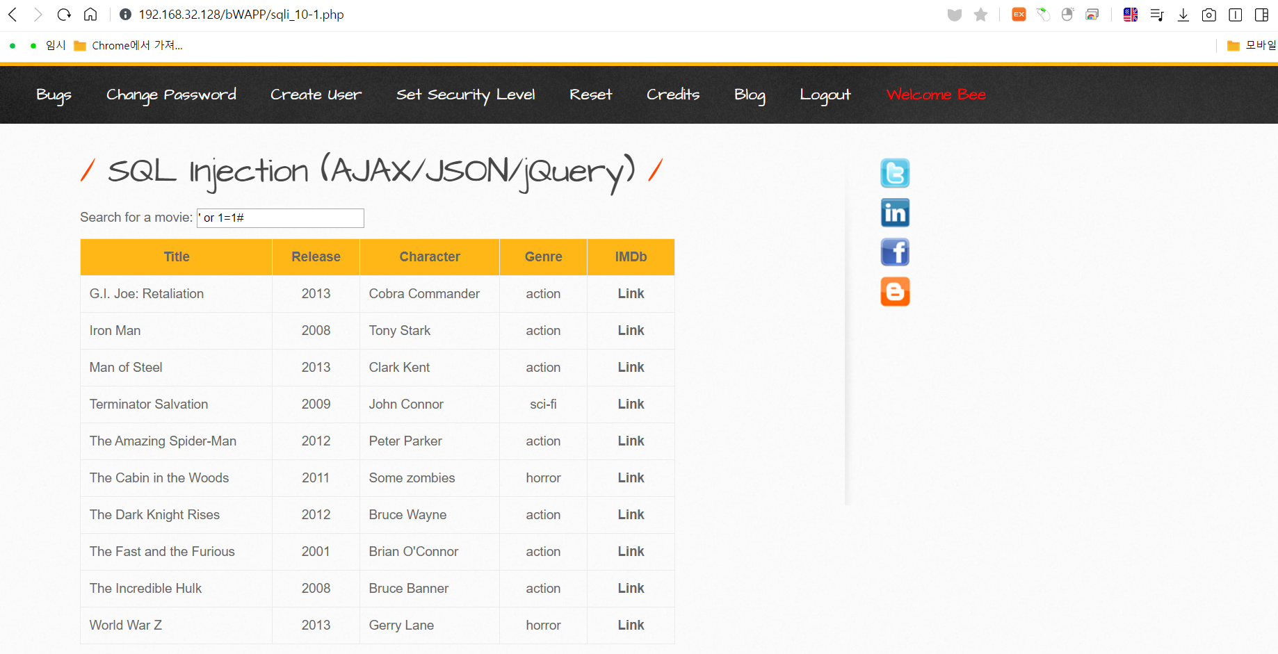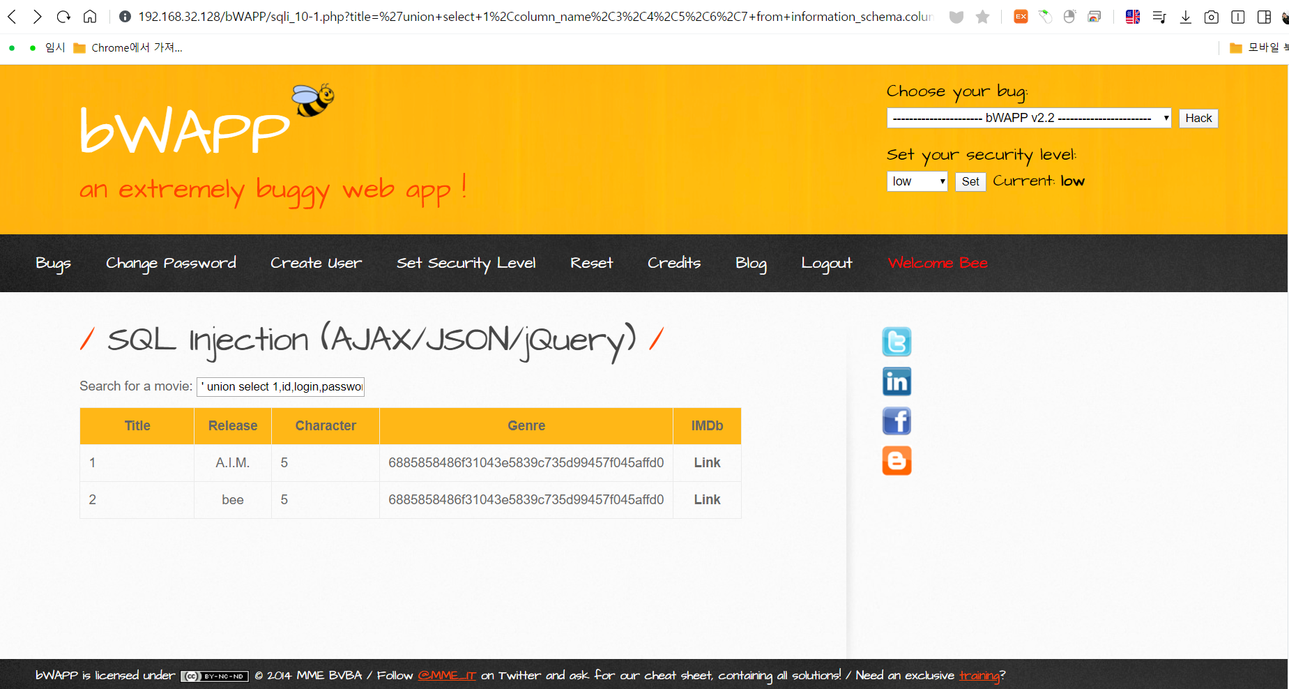 7-5. bee-box 를 사용하여 SQL injection 알아보기! 본문