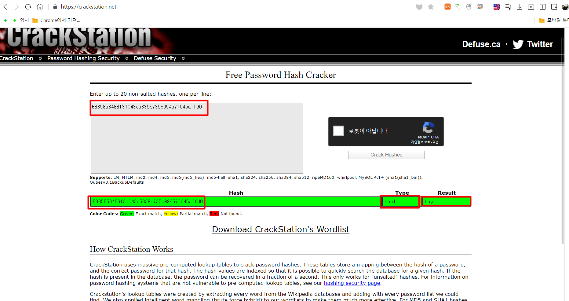 A.I.M의 해쉬 함수는 sha1을 사용하고 결과 값은bug입니다!!
