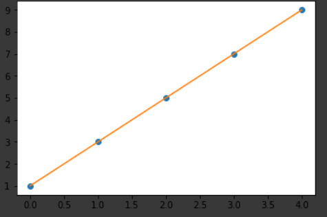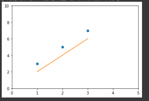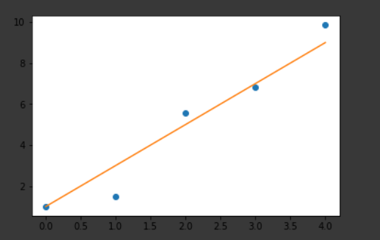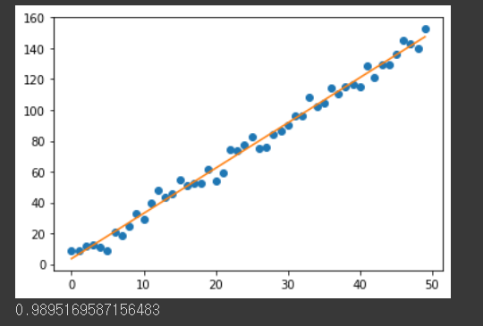 위에서 회귀분석으로 생성된 모델은 최적화된 직선을 만듭니다.