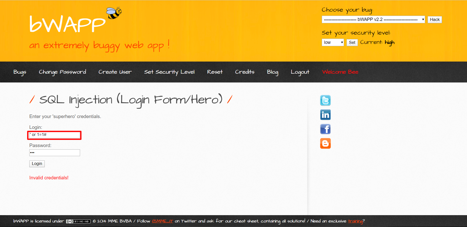 7-6. bee-box 를 사용하여 SQL injection 알아보기! 본문
