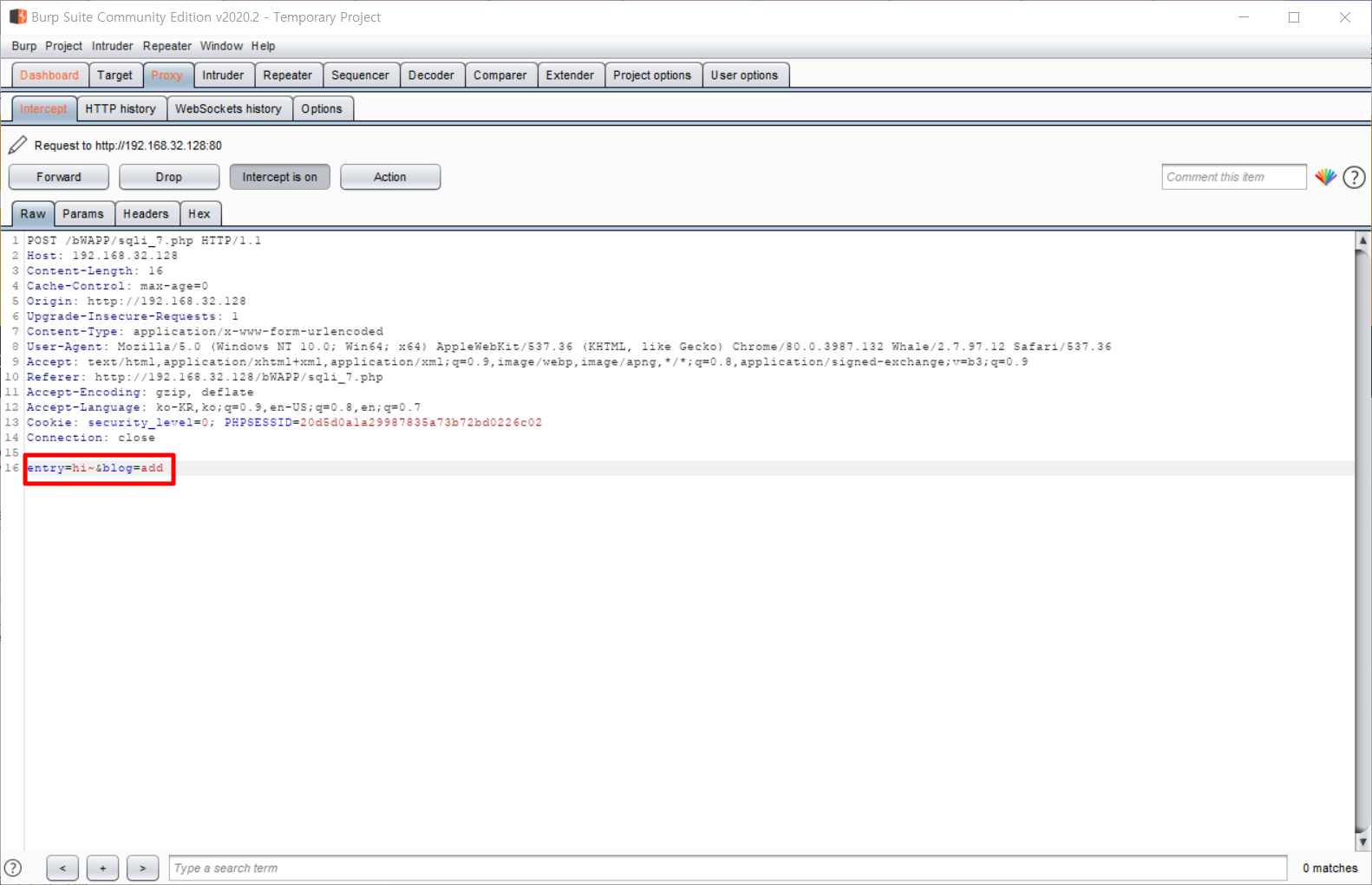 | 7-8. bee-box 를 사용하여 Blind SQL injection 알아보기! (0) | 2020.03.24 |