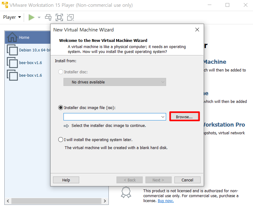 3.Browse를 눌러 우분투 iso 파일을 넣어줍니다 https://ubuntu.com/download/desktop 우분투 홈페이지의 iso파일 다운로드입니다!