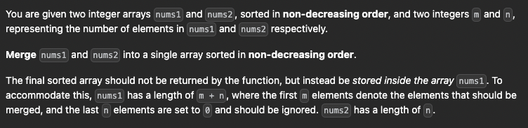 재풀이하며 우선 nums1와 nums2를 먼저 병합하는게 아닌 nums1의 배열을 정리하고 병합해야겠다고 생각했다.