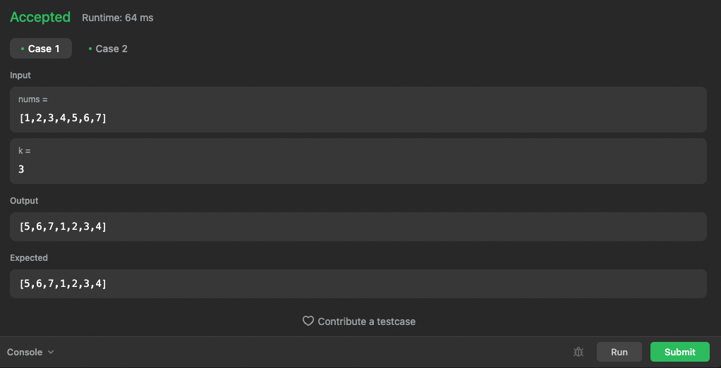 k가 nums.length 보다 클 경우도 고려하여 나머지 값을 사용했다.