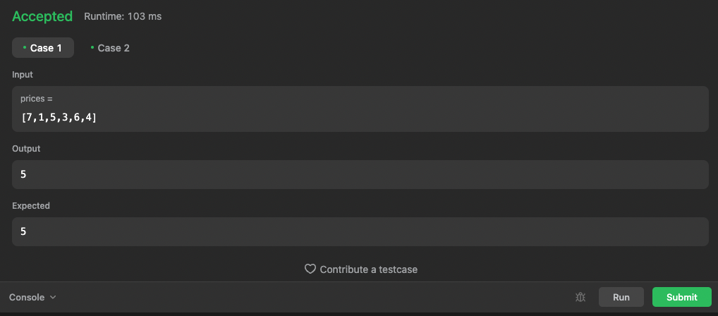 해당 코드로 주어진 아래의 testcase 2개를 통과하여 제출을 했다.