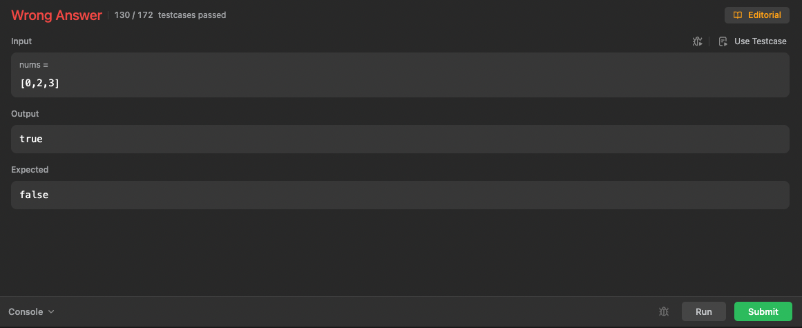 하지만 전체의 172개의 testcase 중 130개만 통과를 하여, 코드에 문제가 있음을 느꼈다.