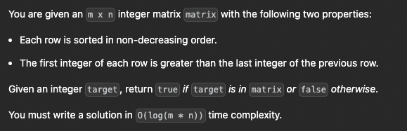 -10^4 <= matrix[i][j], target <= 10^4