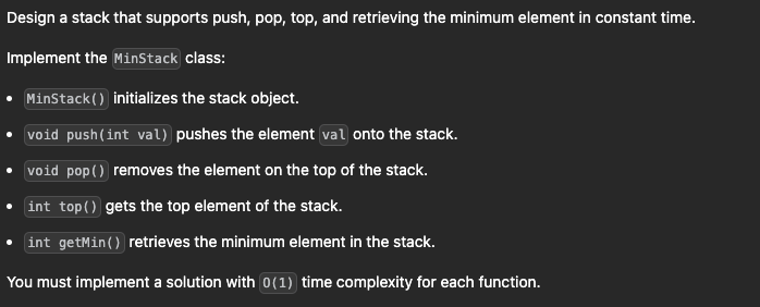 [스택 push(), pop(), top(), getMin() 구현하기]