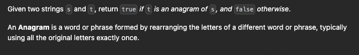해당 문제는 문자열 s와 t가 서로 위치를 변경해도 같은 문자열 이어야 한다.