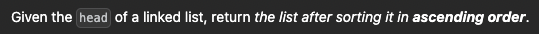 하지만 해당 문제를 병합 정렬로 풀기 위해선 주어진 연결 리스트의 길이를 알아야 하는데, 길이를 어떻게 알 수 있을까에 대한 의문을 풀어내지 못해 배열을 통해 정렬 하는 방법으로 풀이했다.