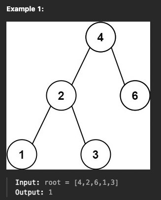 트리의 각각의 노드끼리 간격의 가장 작은 차이의 절댓값을 구하는 문제이다.