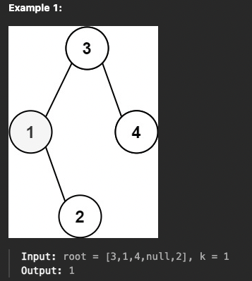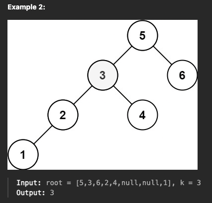 k와 값이 같은지 비교하고 같을 때 현재 노드의 값을 smallest 변수에 값을 넣고 리턴한다.