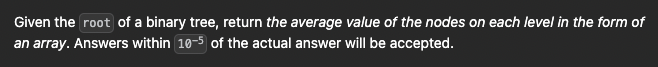 [이진트리의 각 레벨에서의 평균 값 구하기]