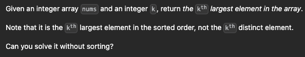 정렬을 하지 않고 k 번째로 큰 값을 구하는 문제이다.