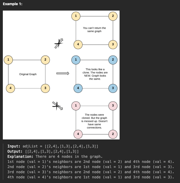 처음 주어지는 노드를 복제하고, 해당 노드의 neighbors들을 재귀 호출해 복제를 한다.