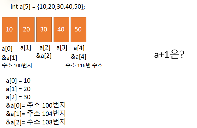 a 가 100번지라고 가정하면 &a [1] 은 104 번지 &a [4] 은 116 번지로 표현이 가능합니다!