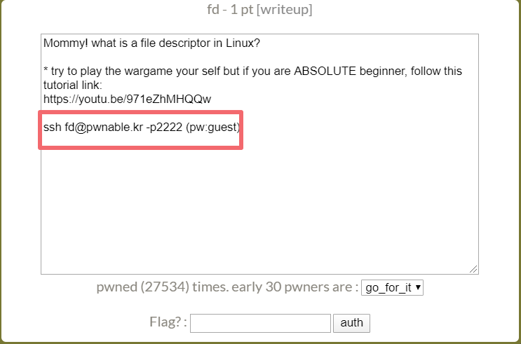먼저 http://pwnable.kr/play.php# 사이트에 들어가서