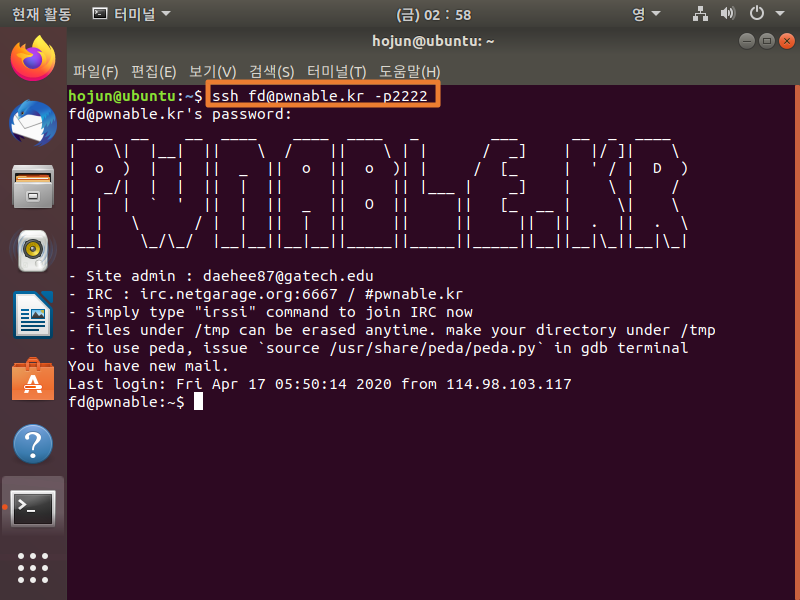 [pwnable] pwnable.kr 1번 fd 풀이 본문