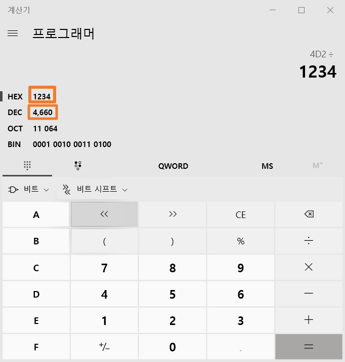 16진수 0X1234를 10진수로 변환하면 4660이 나오기 때문에