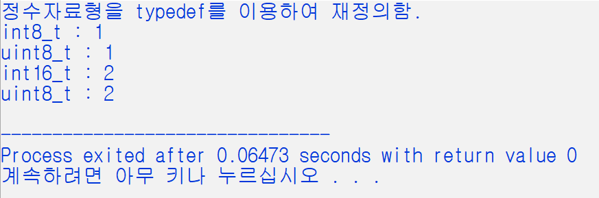 typedef unsigned char uint8_t; // unsigned char를 int8_t 로 재정의한다.