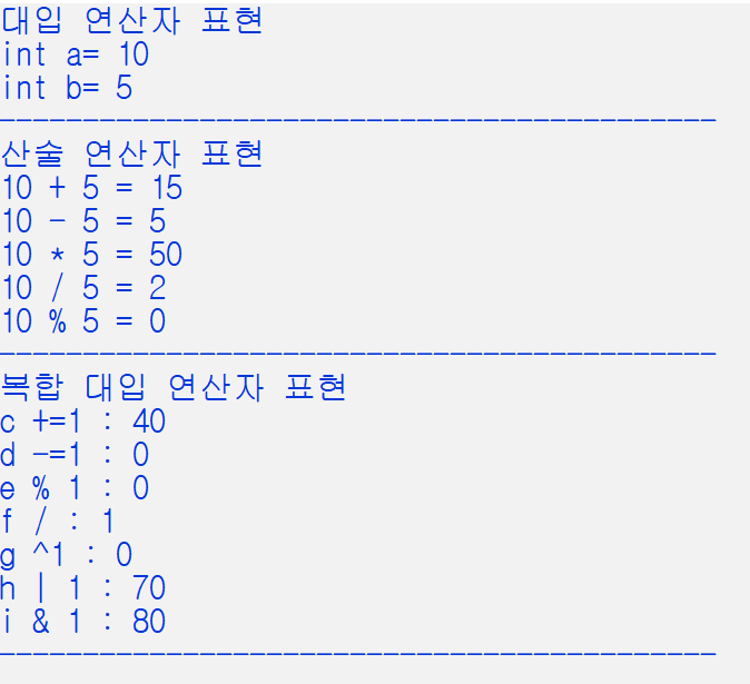 printf("복합 대입 연산자 표현\n");