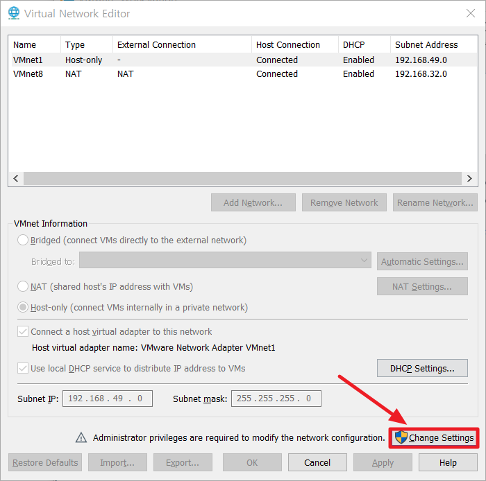 그럼 하단의 'VMnet Information'을 눌러 설정을 해줍니다.