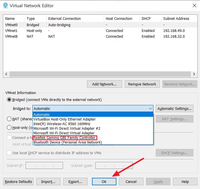그후 VMnet0 으로 Type인 brodged 으로 생성되었습니다.